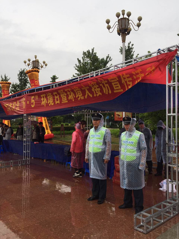 6月5日,漯河市环境保护局在红枫广场举办2017年“6.5”世界环保日宣传活动,漯河市金盾保安服务有限公司冒雨为本次活动保驾护航。